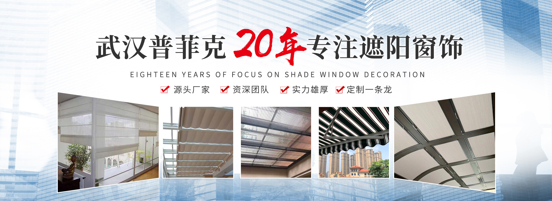 武漢普菲克建材有限公司是一家專業(yè)從事家居窗簾、電動窗簾、窗飾及各種工裝類遮陽產(chǎn)品研發(fā)、方案集成、安裝售后的供應商。 2002年,公司成立于中國的水陸空交通樞紐——武漢。經(jīng)過多年的發(fā)展,公司的業(yè)務范圍... +more